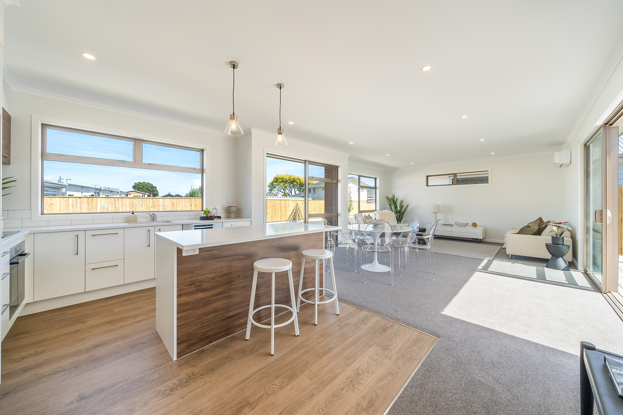 All homes will have infinity water heating and gas has been laid in the street. Along with cook tops, oven and dishwasher, the homes all come with a waste disposer, heated towel rails, bathroom heaters, and heat pump. Double glazing and insulation will off course help keep these homes warm, as will their careful positioning for sun.